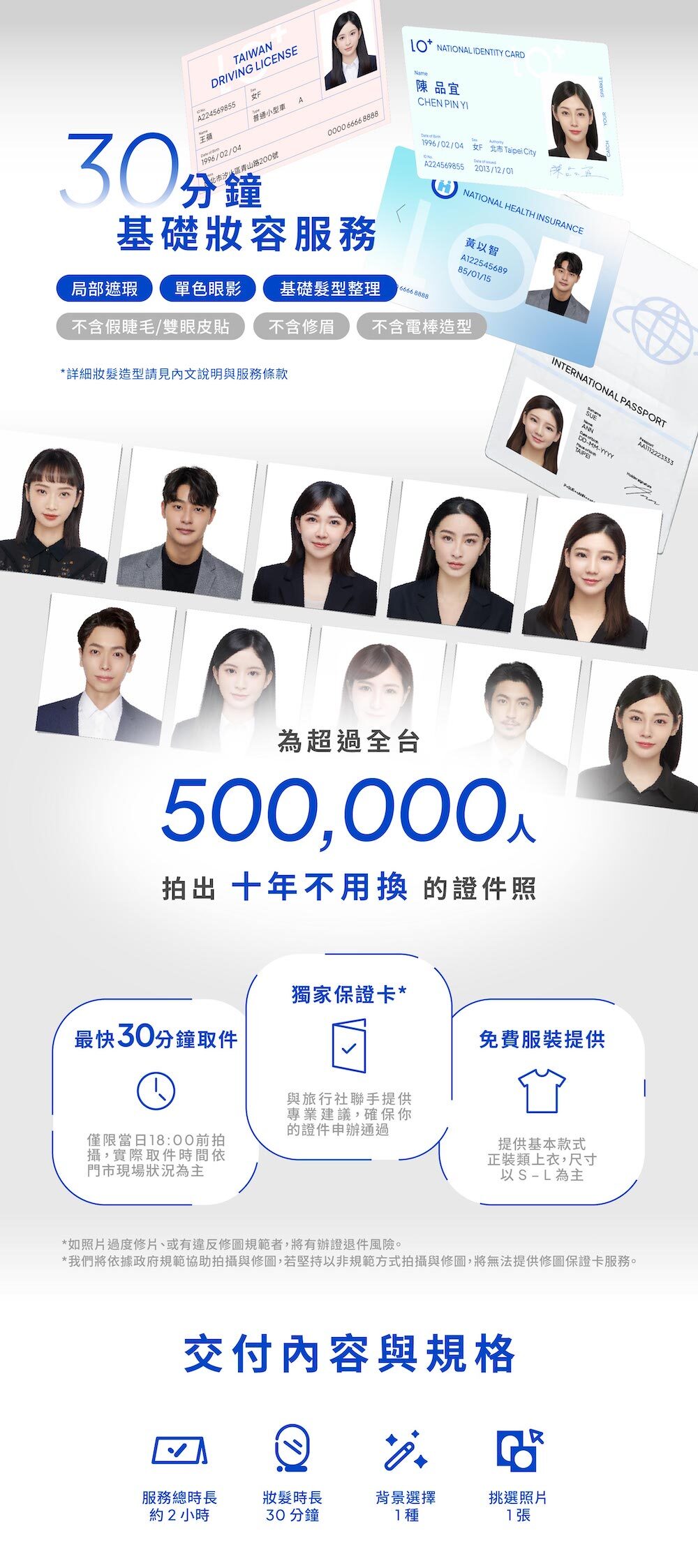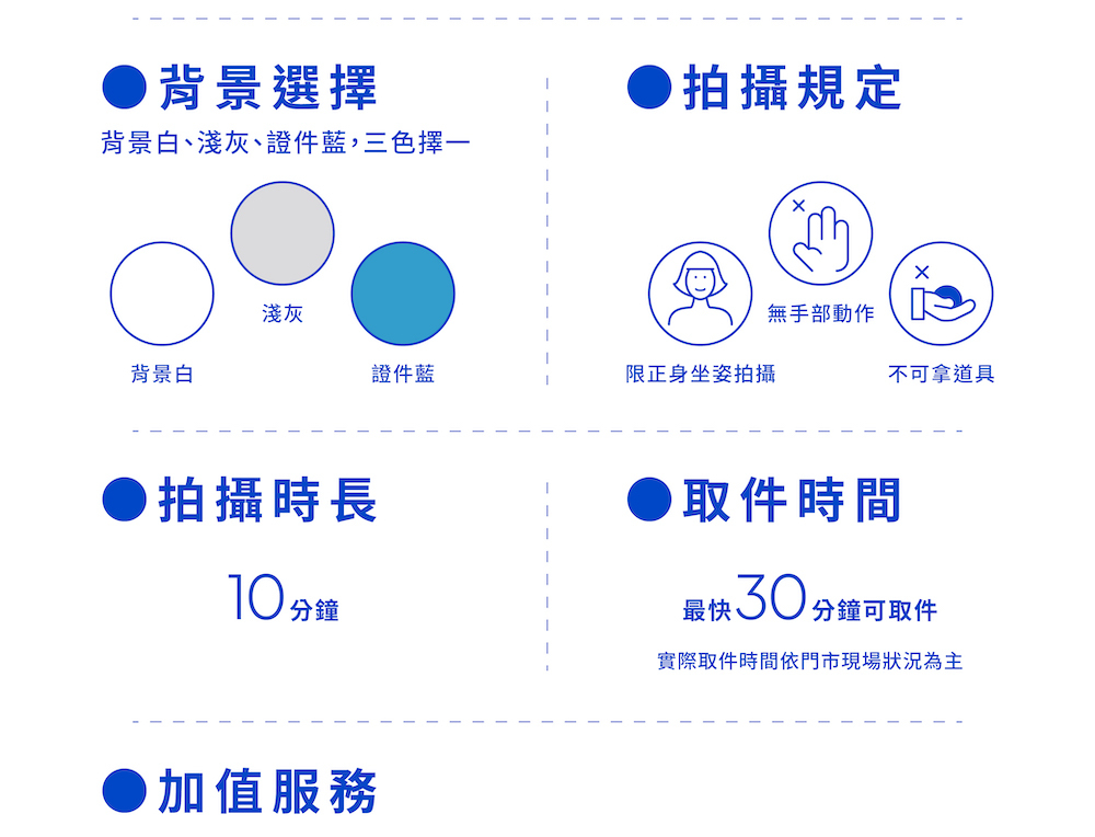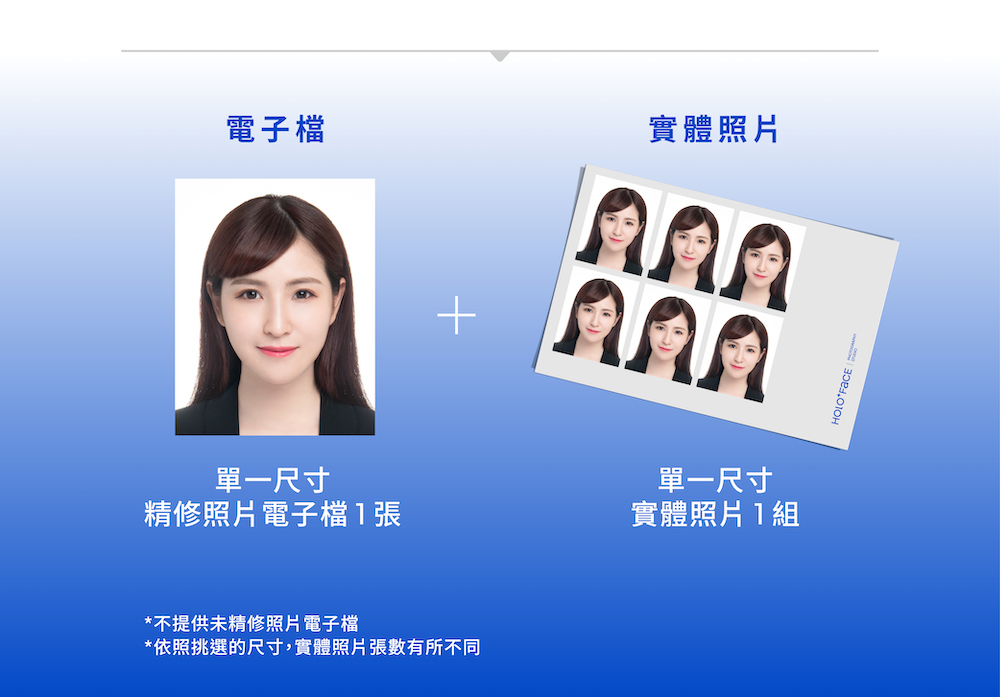 ▸ 韓式證件照:包含基礎妝容服務、免費服裝提供