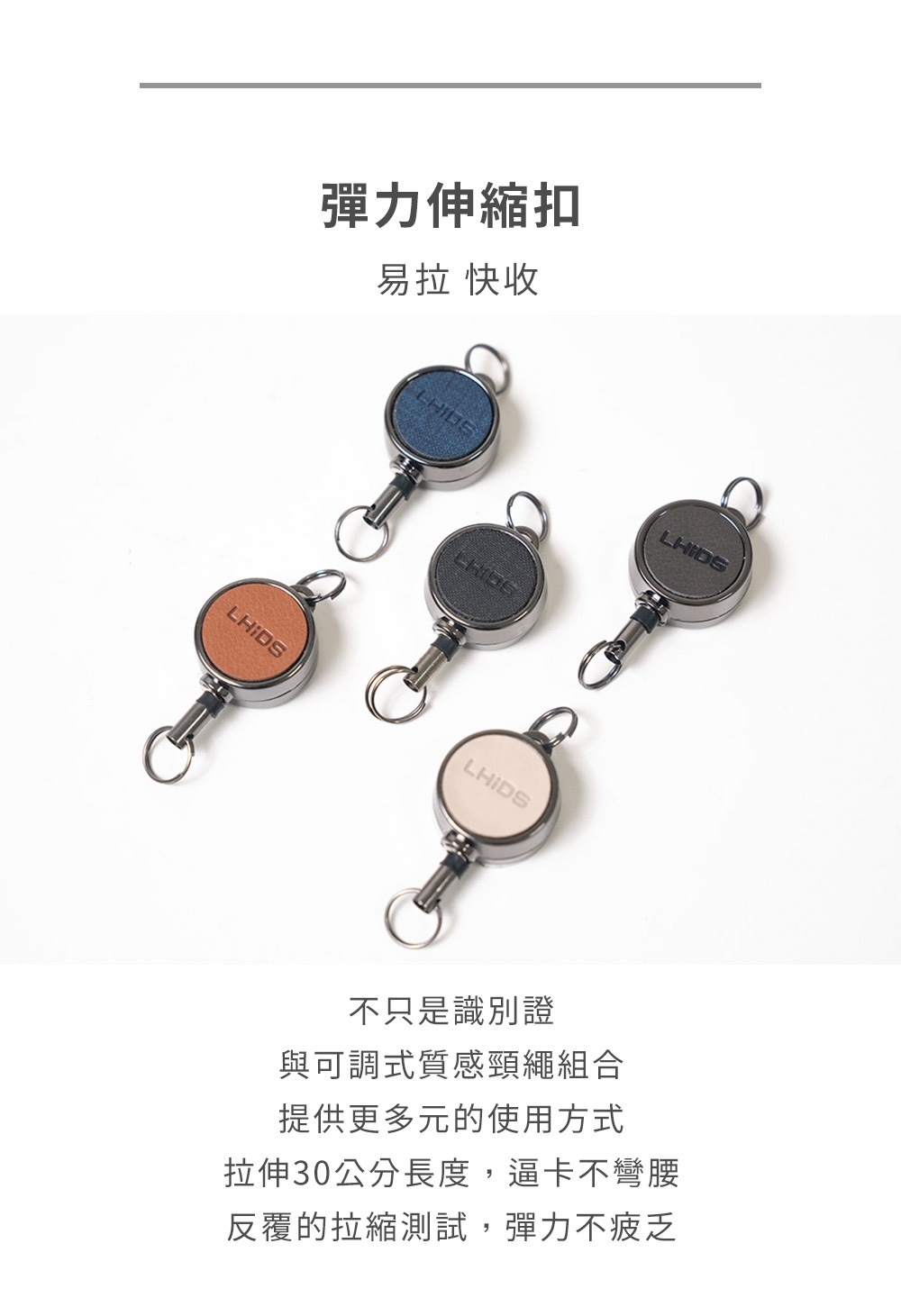 ▸ 識別證五件組包含:翻轉磁吸識別證、便攜卡夾、小磁支架(支援MagSafe)、可調式質感皮革頸繩、彈力拉縮繩