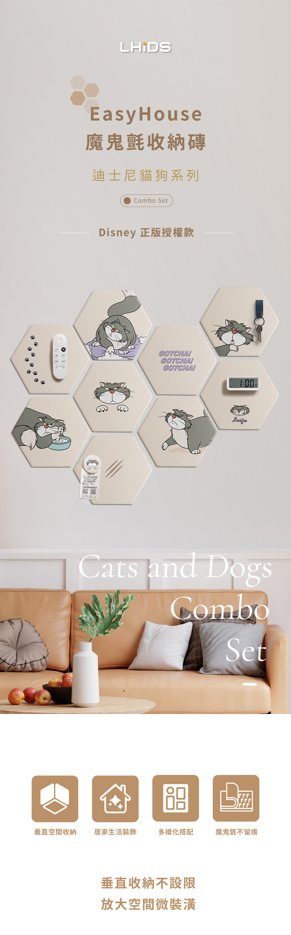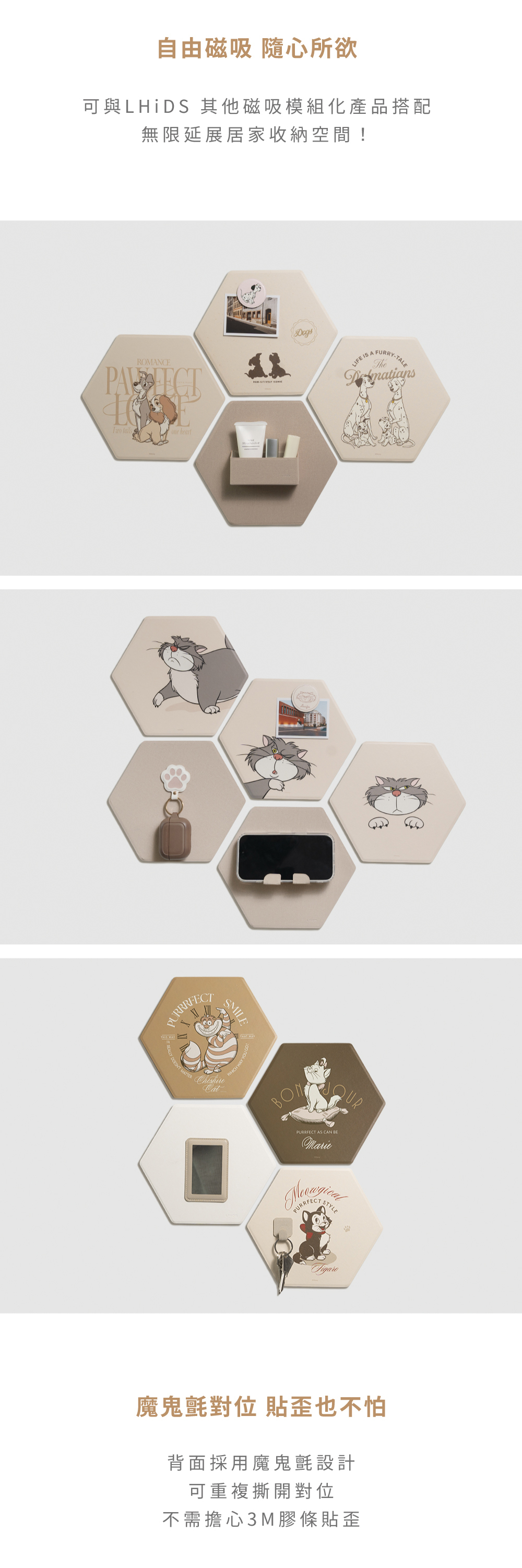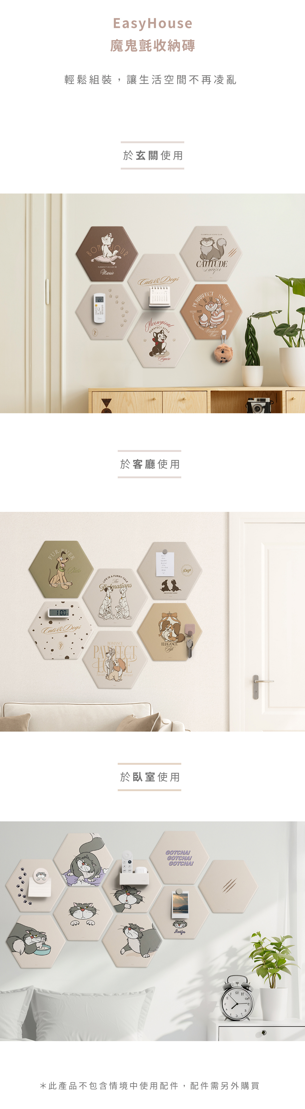 ‣ 多款造型自由拼貼,安裝快速,不傷牆面不留痕