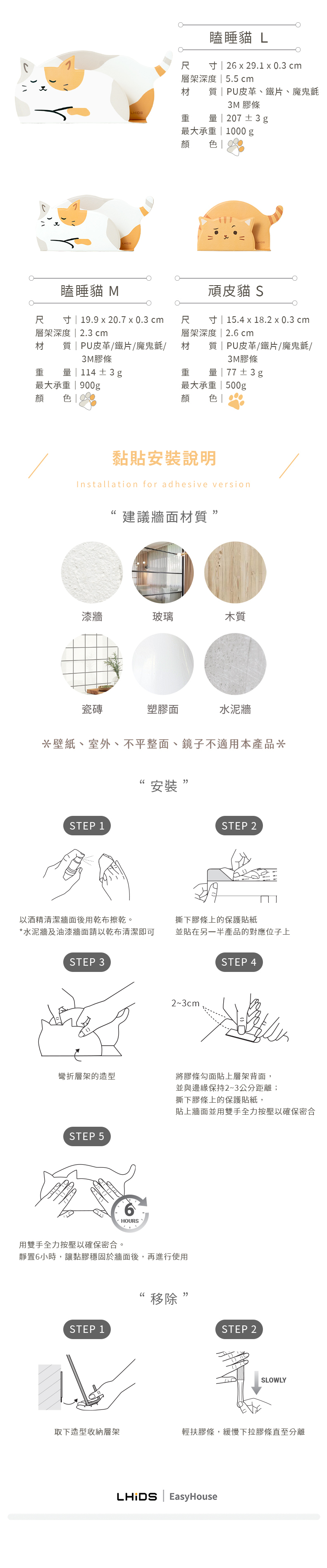兩個版本可以將產品安全牢固地貼在牆面上,撕下後不留殘膠或傷牆,且替換膠條後便可重複粘貼