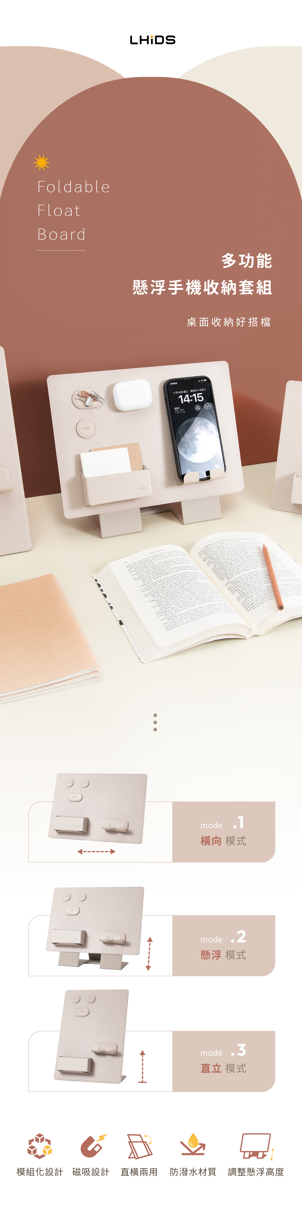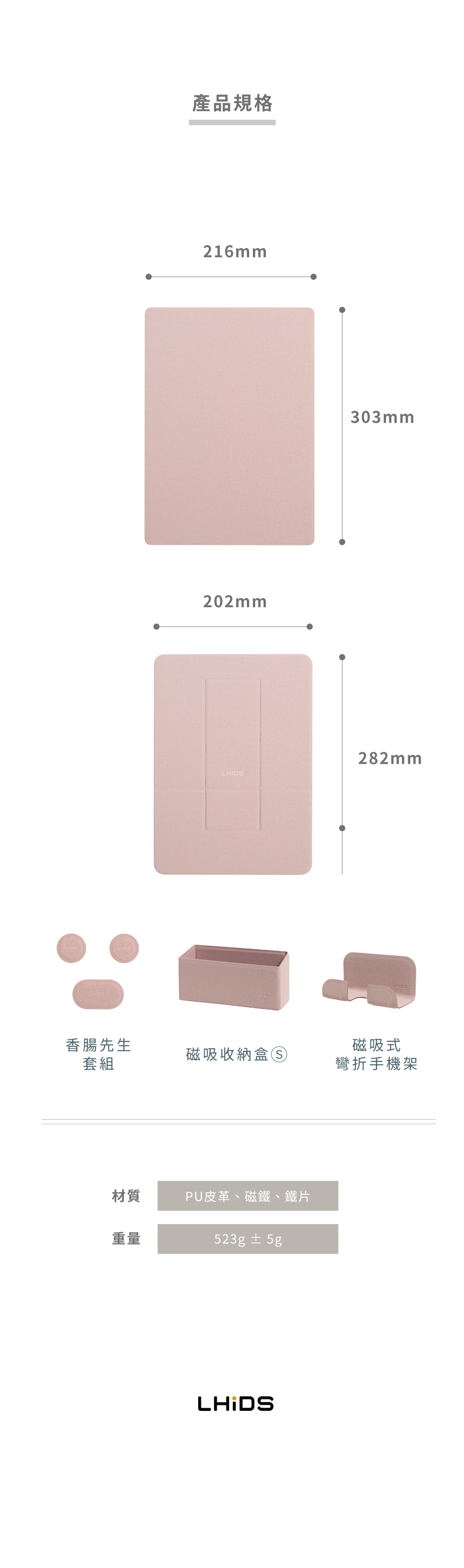 ‣ 商品組合含:多功能懸浮收納板、香腸先生套組、磁吸收納盒、磁吸式彎折手機架