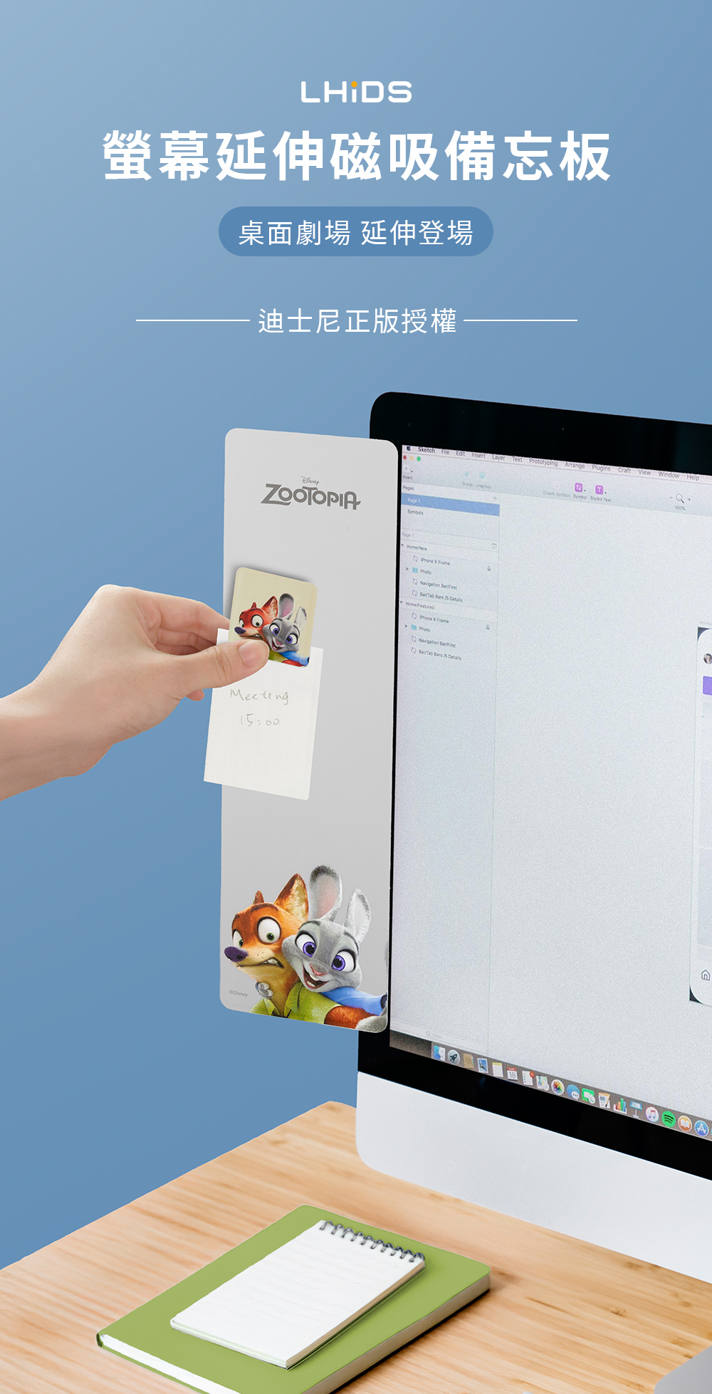【動物方城市】無敵雙搭檔_ 螢幕延伸磁吸備忘板 (正版授權)