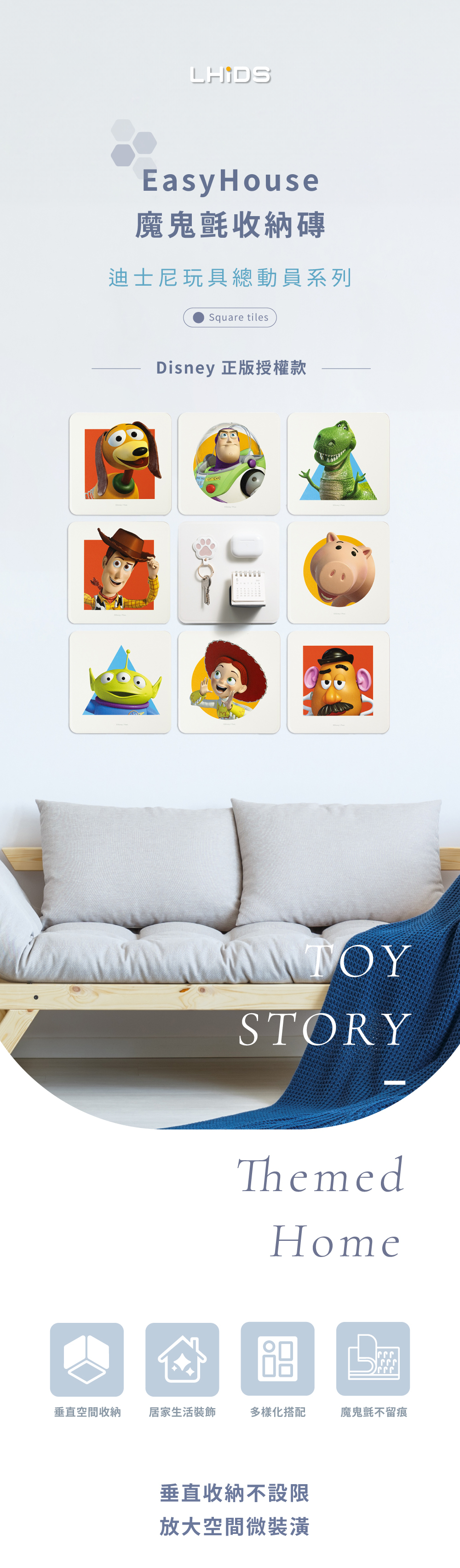 ‣ 多款造型自由拼貼,安裝快速,不傷牆面不留痕