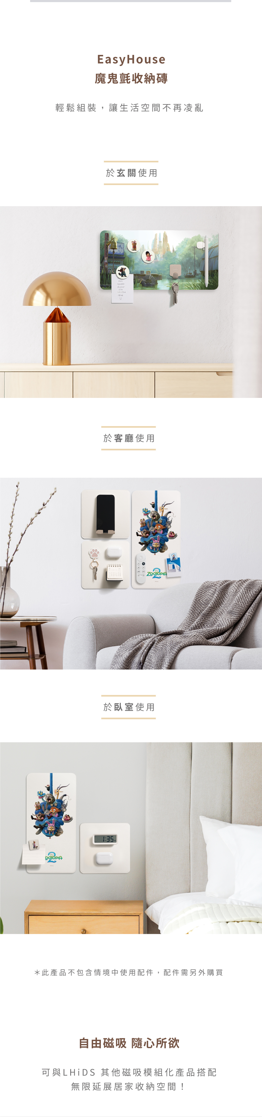 ‣ 多款造型自由拼貼,安裝快速,不傷牆面不留痕
